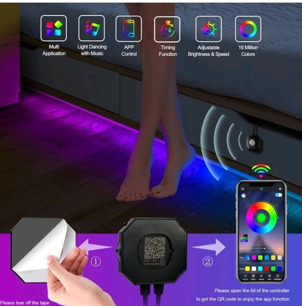 Motion Sensor RGB Under Bed Light Strip – Smart Auto-On LED for Bedroom (20M)